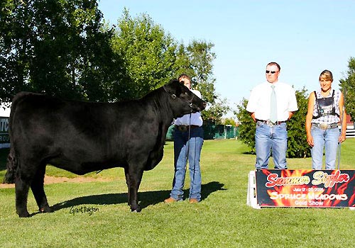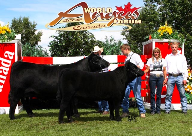 HF Tibbie 63T was Champion Yearling Heifer at the Summer Sizzler show for the World Forum, and then a Silver medalist with her first calf at the World Angus Forum. She has a lot of power, muscle, and extreme hair! Her 2011 bull calf by the $210,000 Connealy Consensus 7229 is a must-see as his pedigree and phenotype are one of a kind! BJ�S Cor Vet Secret Weapon 133 is moderate in size, with amazing muscle, extreme hair quality, and great epd�s. Watch for him to make his mark in the Angus breed. Be sure to stop and see him!!