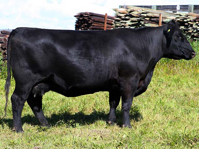 This female offer two of the best breeding bulls Hamilton�s have ever bought, Greens Premium and Riverbend Powerline. She is moderate in size, with lots of volume, capacity, and depth. She has a very good udder, and is pleasant to be around.