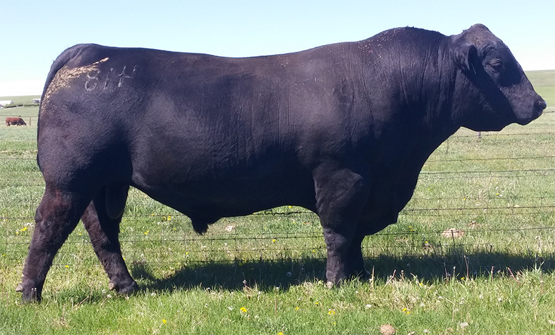 We are sure pleased with the calves that Bulldozer has sired! They are everything and more we could ask for! His calves start out with very moderate BW and are super thick with that jet black hair we all want! Through the summer his sire group both sexes are a complete stand out and so uniform. We feel these calves are what the industry is striving for today! Bulldozer was a member of our Supreme Champion Pen of Bulls at Medicine Hat Pen Show along with 2 of his ET full brothers! His dam is Merit Jilt 7091. What more can we say about her! Jilt has had our best calf every year no matter what it is out of. It does not matter if its her natural or ET out of her they are always the best. We have flushed her a lot and we will continue to do so going forward! Be sure to stop by and see Bulldozer and his calves at anytime you will not be disappointed!