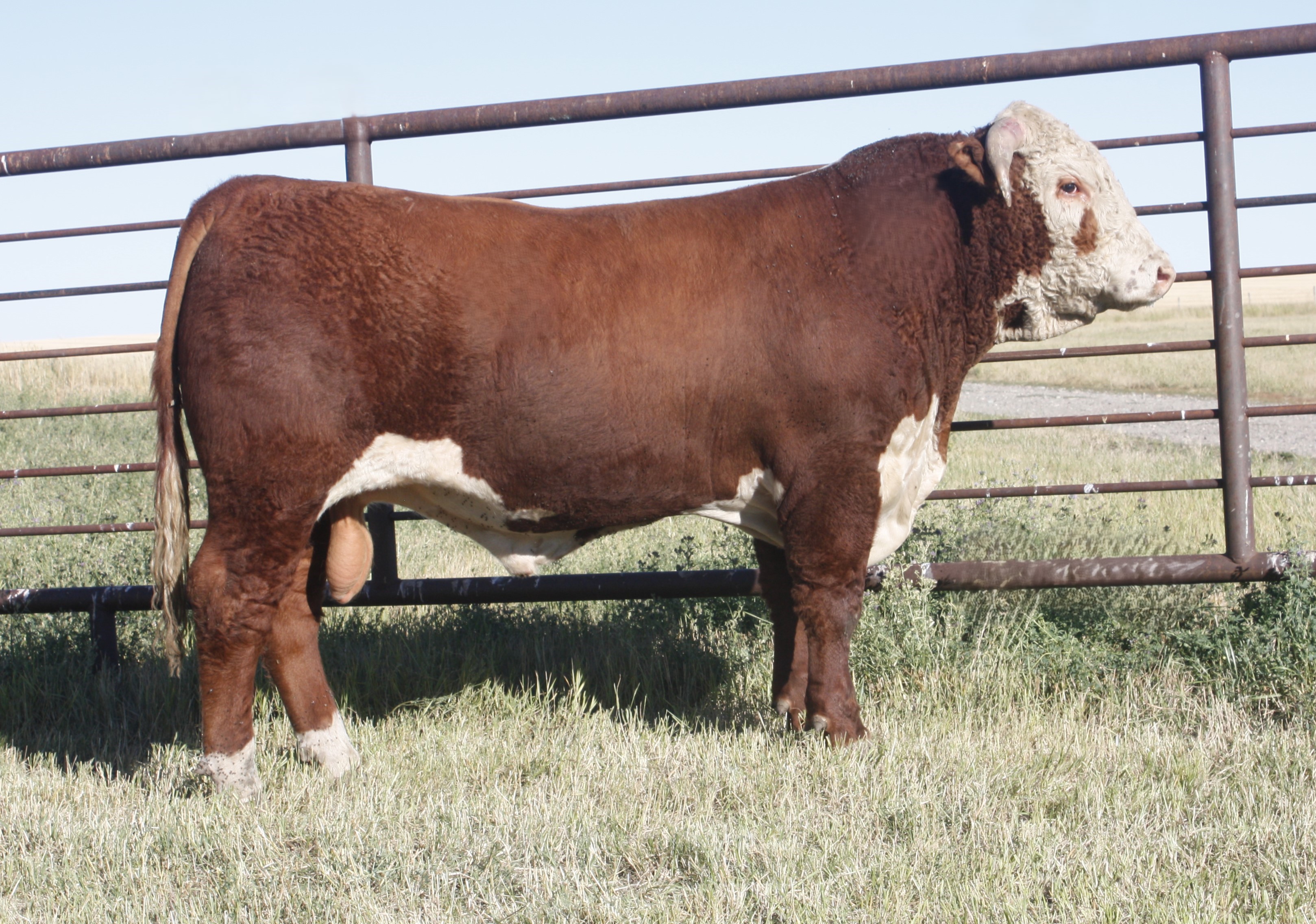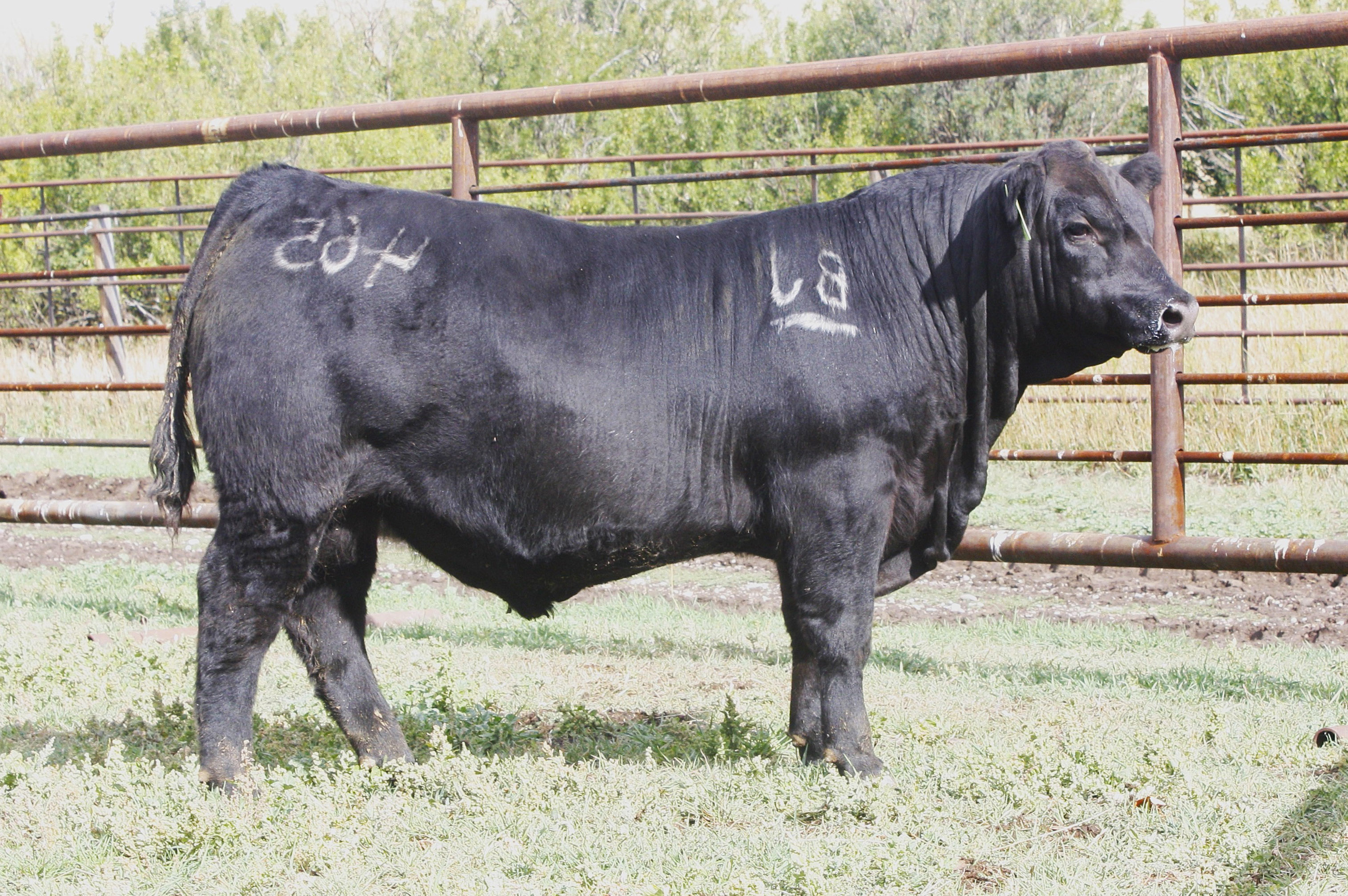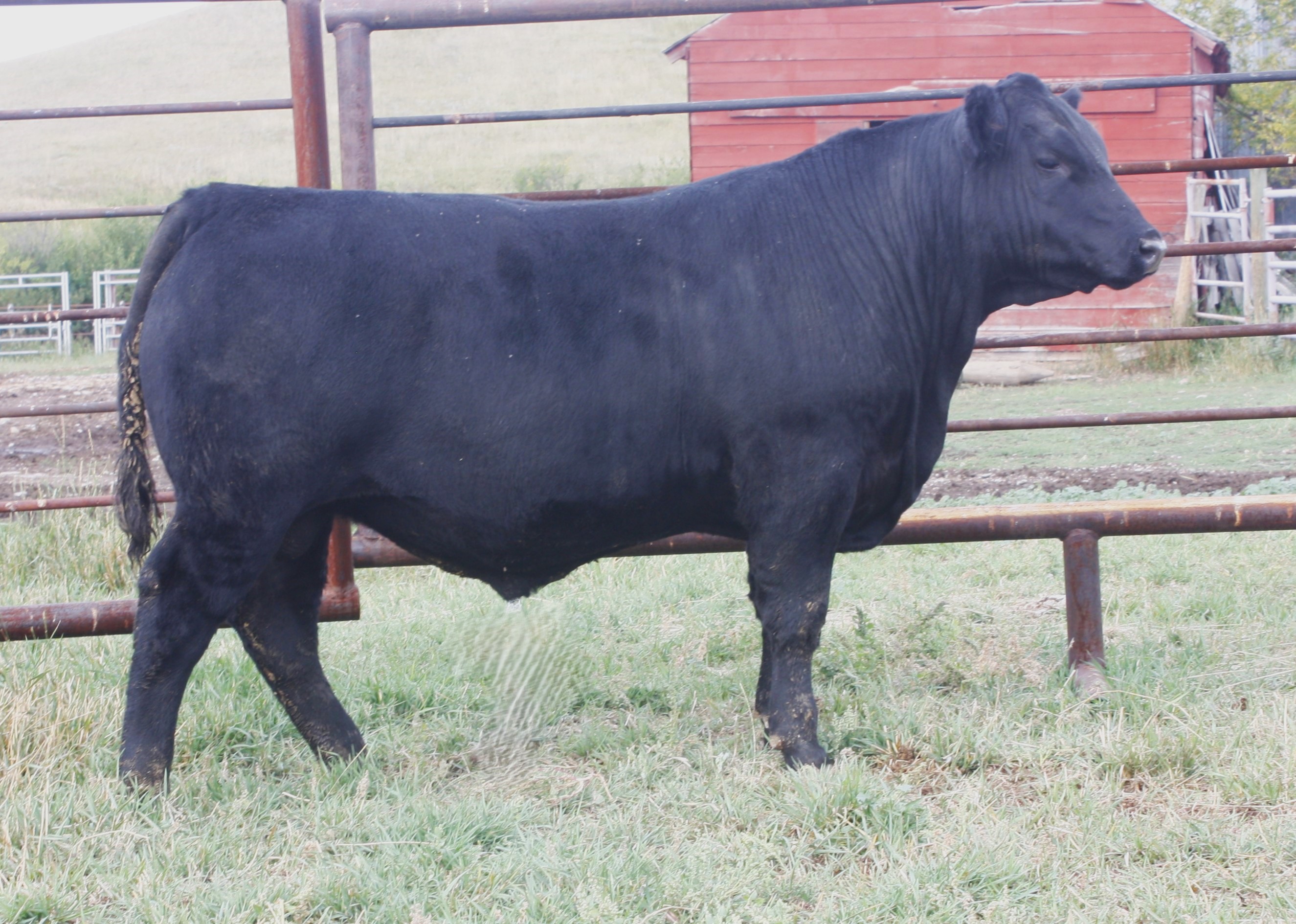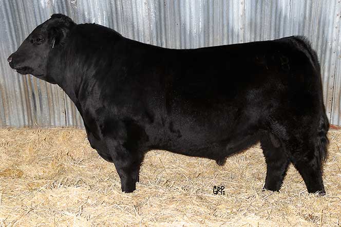 in last years sale to Black Meadows Angus, MB for $15,500. His calves are looking great, they are very thick, very hairy, and have huge bone! We look for him to be used very heavy this year!