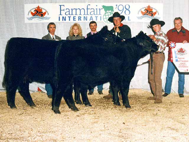 SHOW RECORD: Undefeated in 4-H shows 1997 • Reserve Champion Female 1997 Canadian National JR. Angus Show • Reserve Junior Champion 1997 Agribition • Grand Champion Angus Heifer 1997 Agribition Jr Show • Undefeated in 4-H shows 1998 • All Breed Champion Female 1998 Frontier Days, Swift Current • Champion Angus Female 1998 Central Butte Fair • Supreme Champion Female 1998 Canadian National Jr. Angus Show • Supreme Jr. Interbreed Champion Female 1998 Edmonton FarmFair • Supreme Champion Female 2001 Chinook Livestock Classic